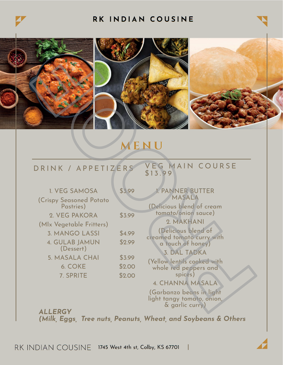 Welcome to RK Indian Cuisine, nestled in the heart of Colby, Kansas. This charming eatery offers a delightful journey through vibrant Indian flavors, served in a cozy, homey atmosphere reminiscent of a classic motor inn. Diners can choose their spice level, making meals both accessible and adventurous.